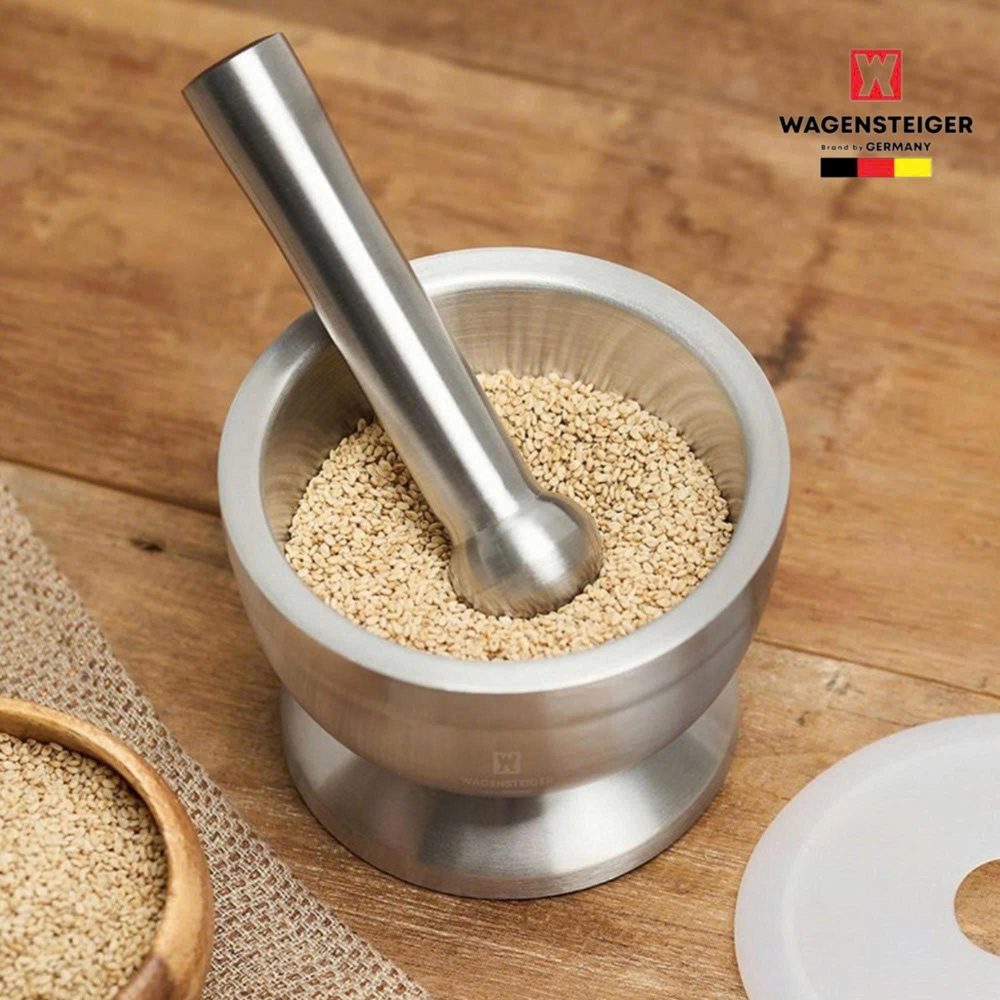 Bộ cối Wagensteiger Stainless Steel cao cấp, giã tỏi, gừng, hạt dễ dàng. Chất liệu inox 304 không gỉ, không ám mùi. Mua bộ cối giã bền đẹp chính hãng!