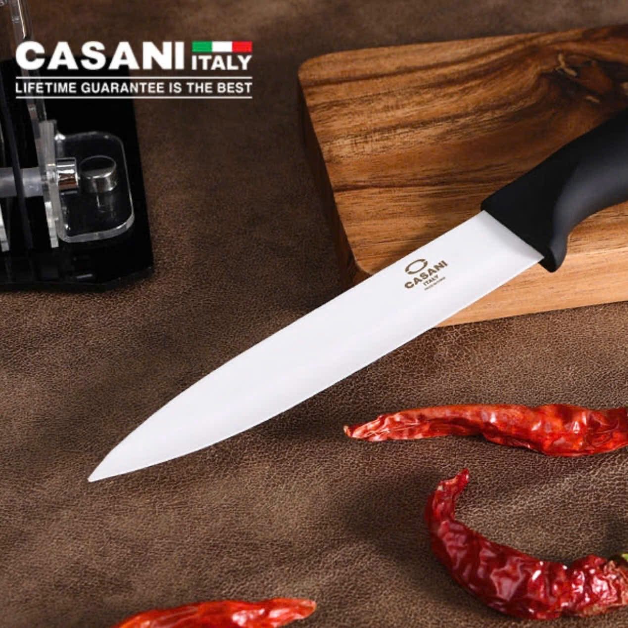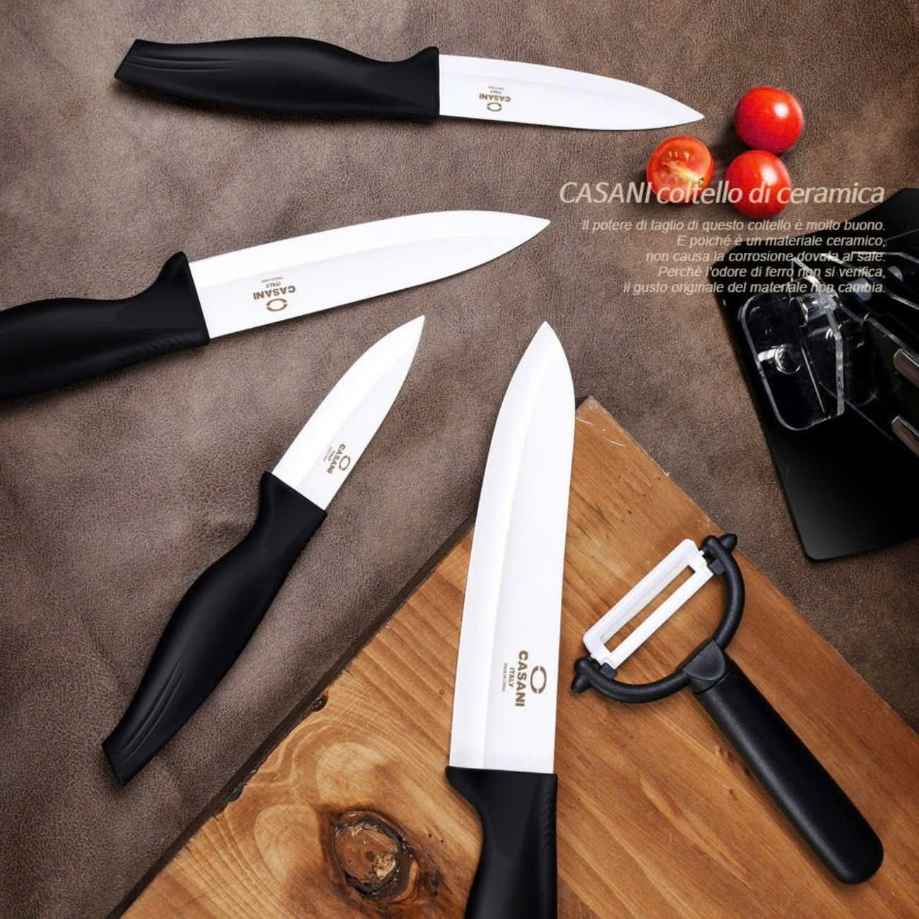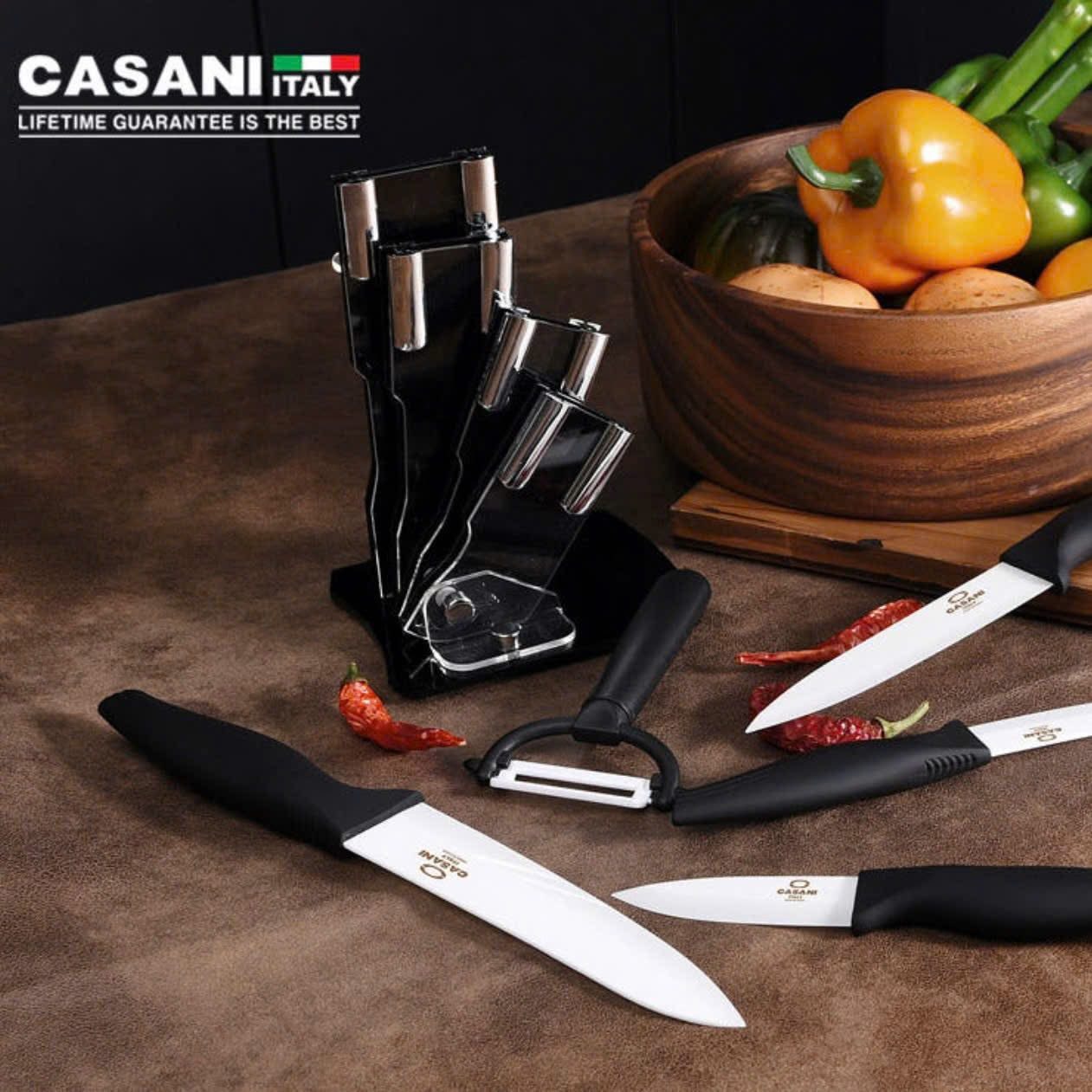 Bộ dao nhà bếp kèm nạo 6 món Casani ceramic sắc bén, không gỉ, an toàn tuyệt đối. BỘ DAO SỨ CAO CẤP CASANI ITALY – gọn gàng, sang trọng, đa năng.