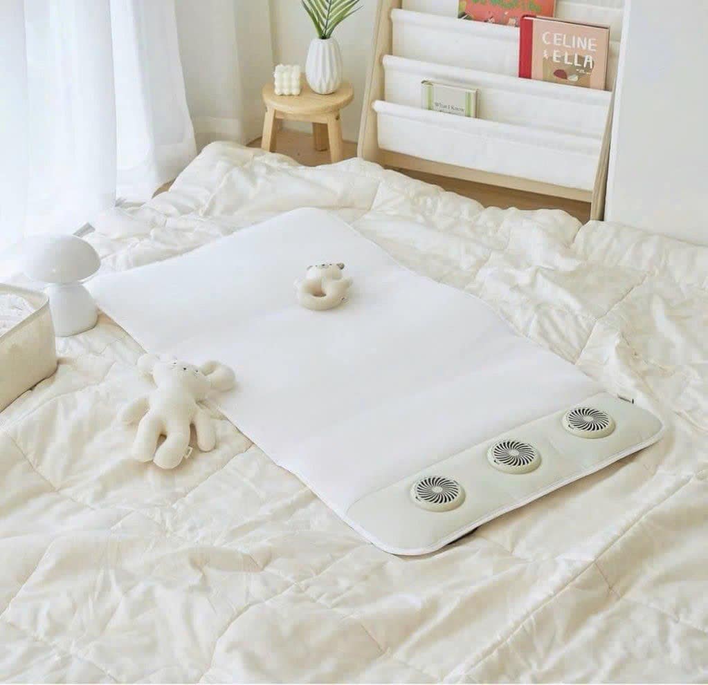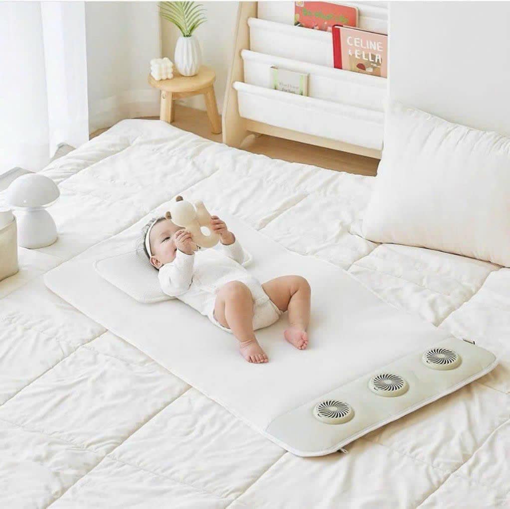 Đệm điều hòa Ggumbi Triple Fan 3 quạt làm mát từ đầu đến chân, lưới 3D thoáng khí, chứng nhận KC Hàn Quốc. Giúp bé ngủ ngon, không lo mồ hôi lưng.