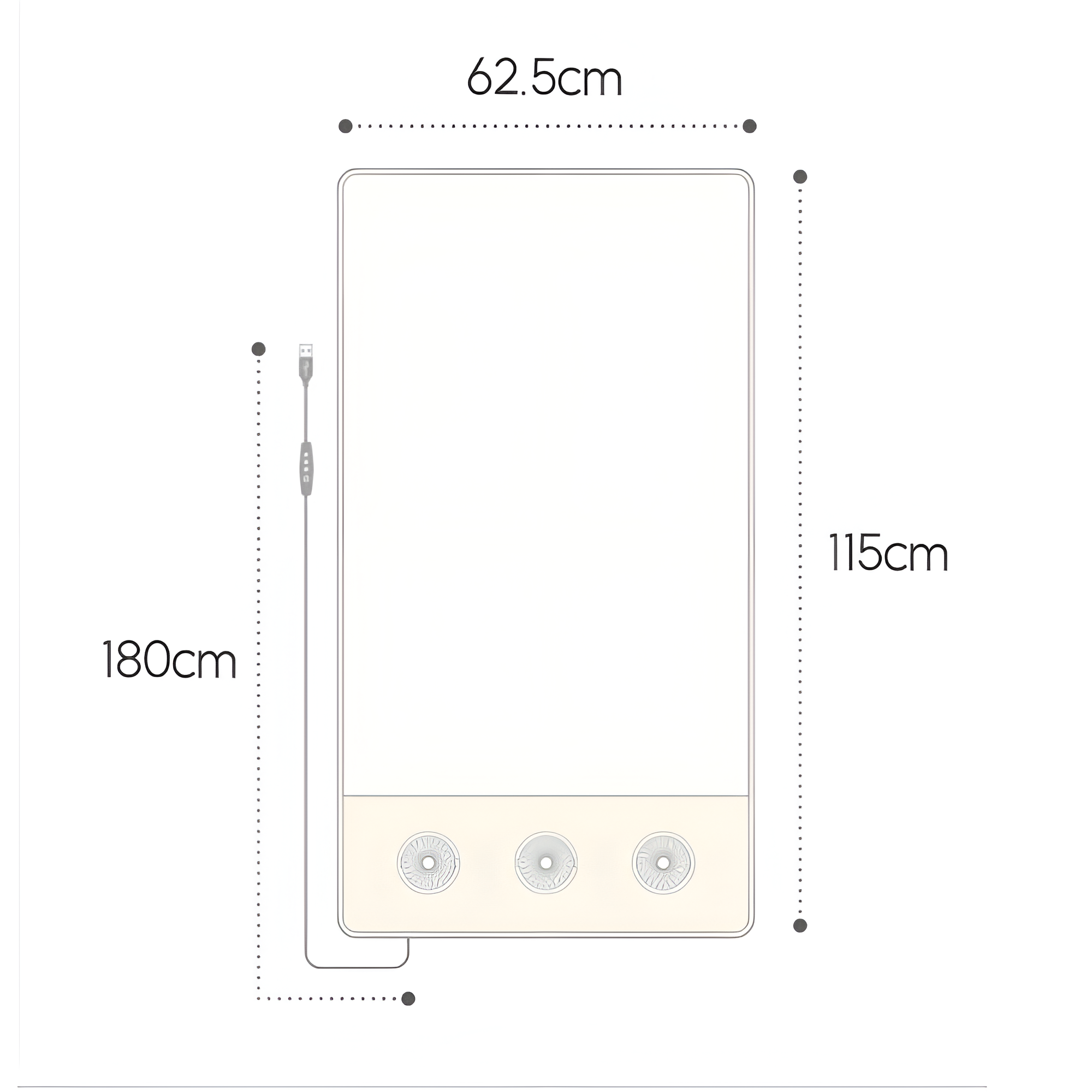 - Kích thước: 115x62,5cm, chiều dài cáp sạc: 180cm