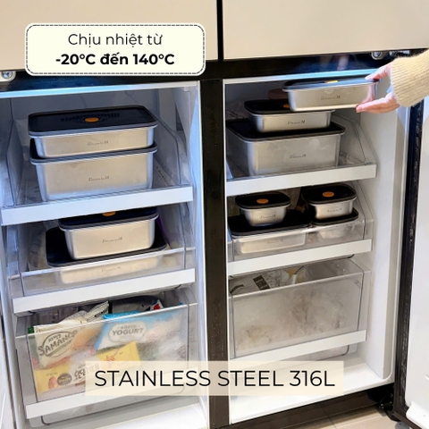 Nổi bật trong phân khúc cao cấp, hộp inox 316L dùng lò vi sóng Perfection by M mang đến trải nghiệm hoàn toàn khác biệt: bảo quản an toàn – hâm nóng tiện lợi – sử dụng bền bỉ nhiều năm.