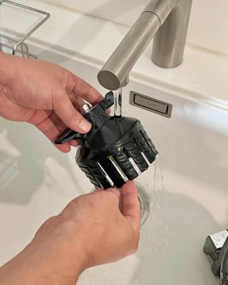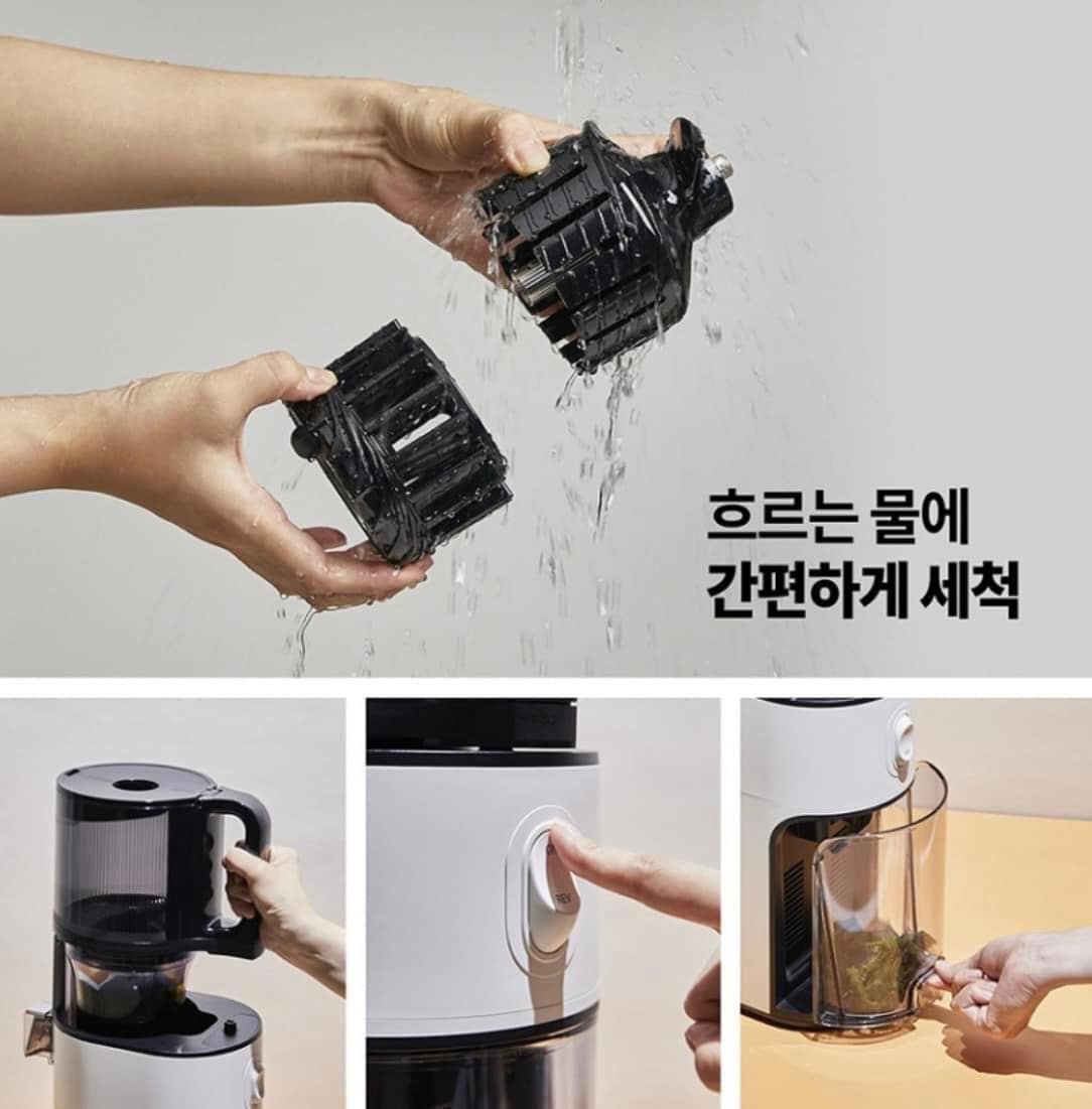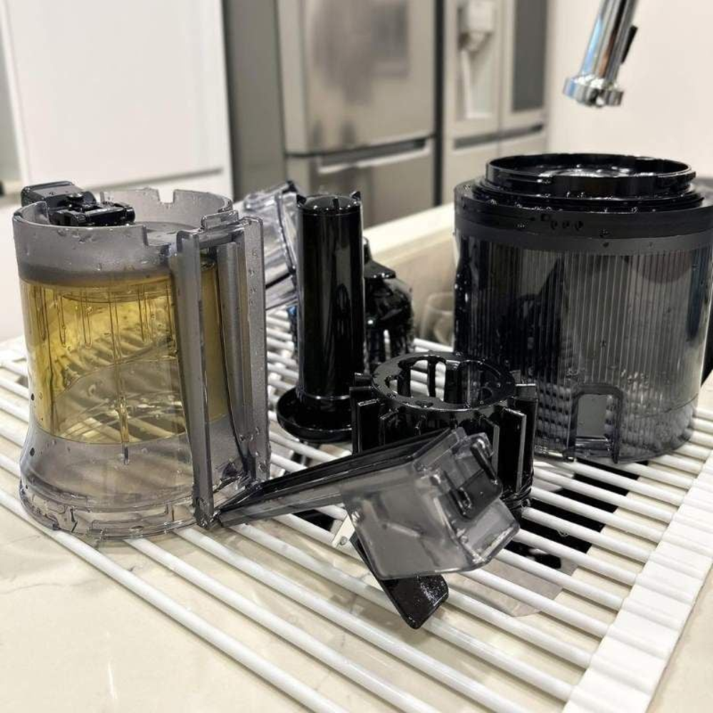 Rửa các bộ phận: lưới lọc, trục vít, khay bã & khay nước ép trực tiếp dưới vòi nước, sử dụng bàn chải đi kèm