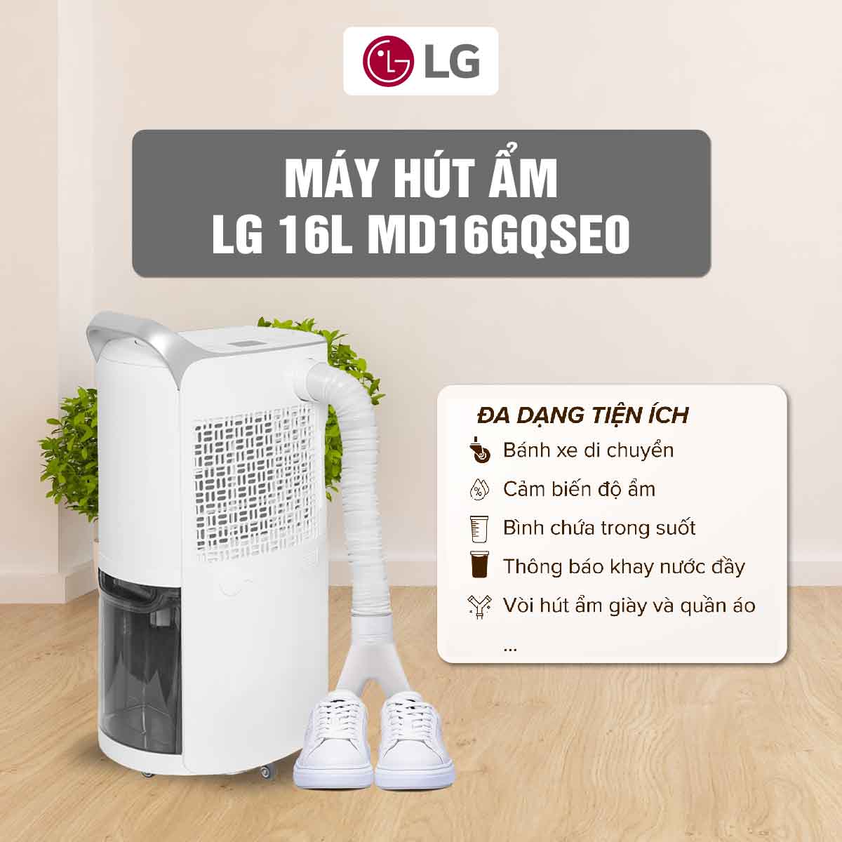 Máy hút ẩm LG Dual Inverter 16L màu trắng MD16GQSE0.ABAE là thiết bị gia dụng cao cấp, kết hợp hoàn hảo giữa hiệu suất hút ẩm mạnh mẽ và vận hành êm ái nhờ công nghệ Dual Inverter tiên tiến.