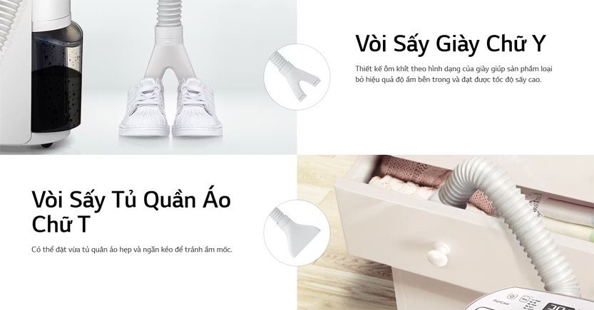 Vòi chữ Y: Hút khô giày dép nhanh chóng, tránh ẩm mốc.