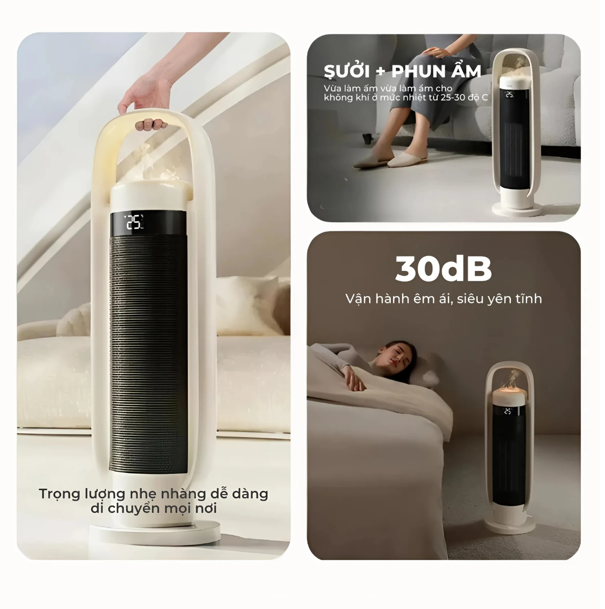 💨 Phun ẩm tích hợp: Không khí ấm nhưng không khô rát da, bảo vệ sức khỏe hô hấp.