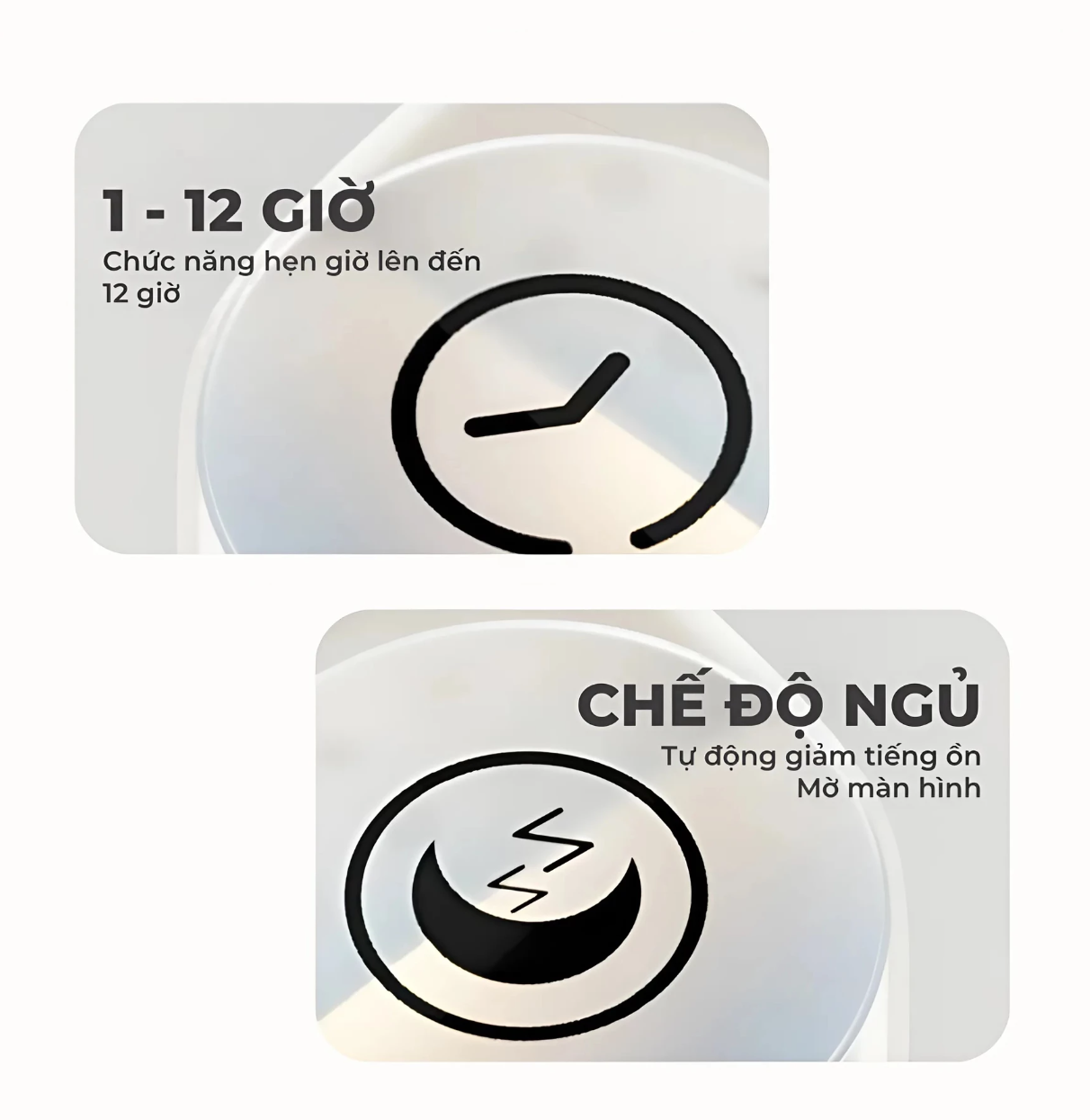 🕒 Chế độ hẹn giờ 12h & màn hình LED: Hiển thị trực quan, dễ kiểm soát.