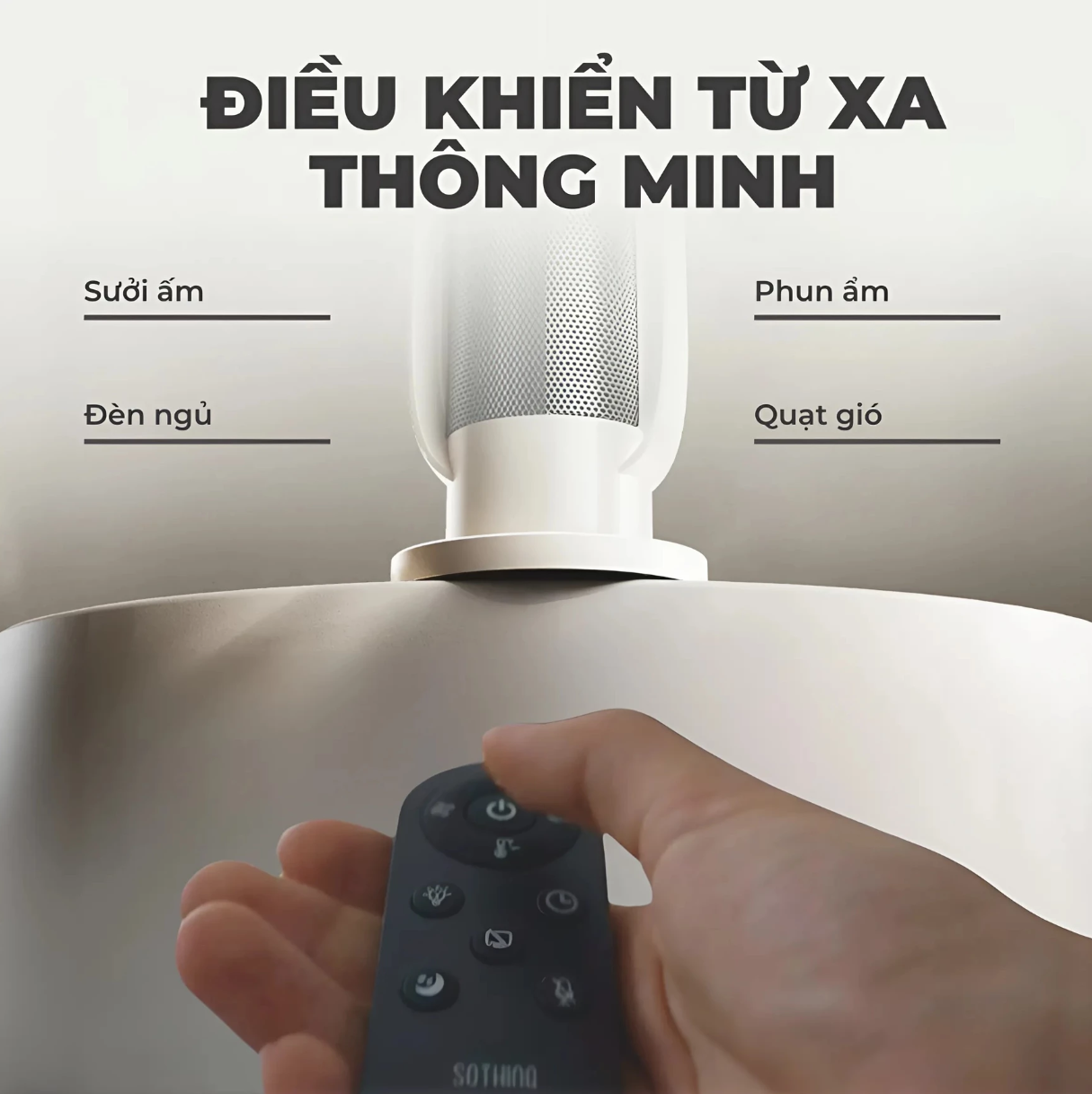 Máy sưởi tháp tạo ẩm 4in1 Sothing công suất 2200W, nhỏ gọn, chức năng sưởi, phun ẩm, quạt gió, đèn ngủ tiện lợi.