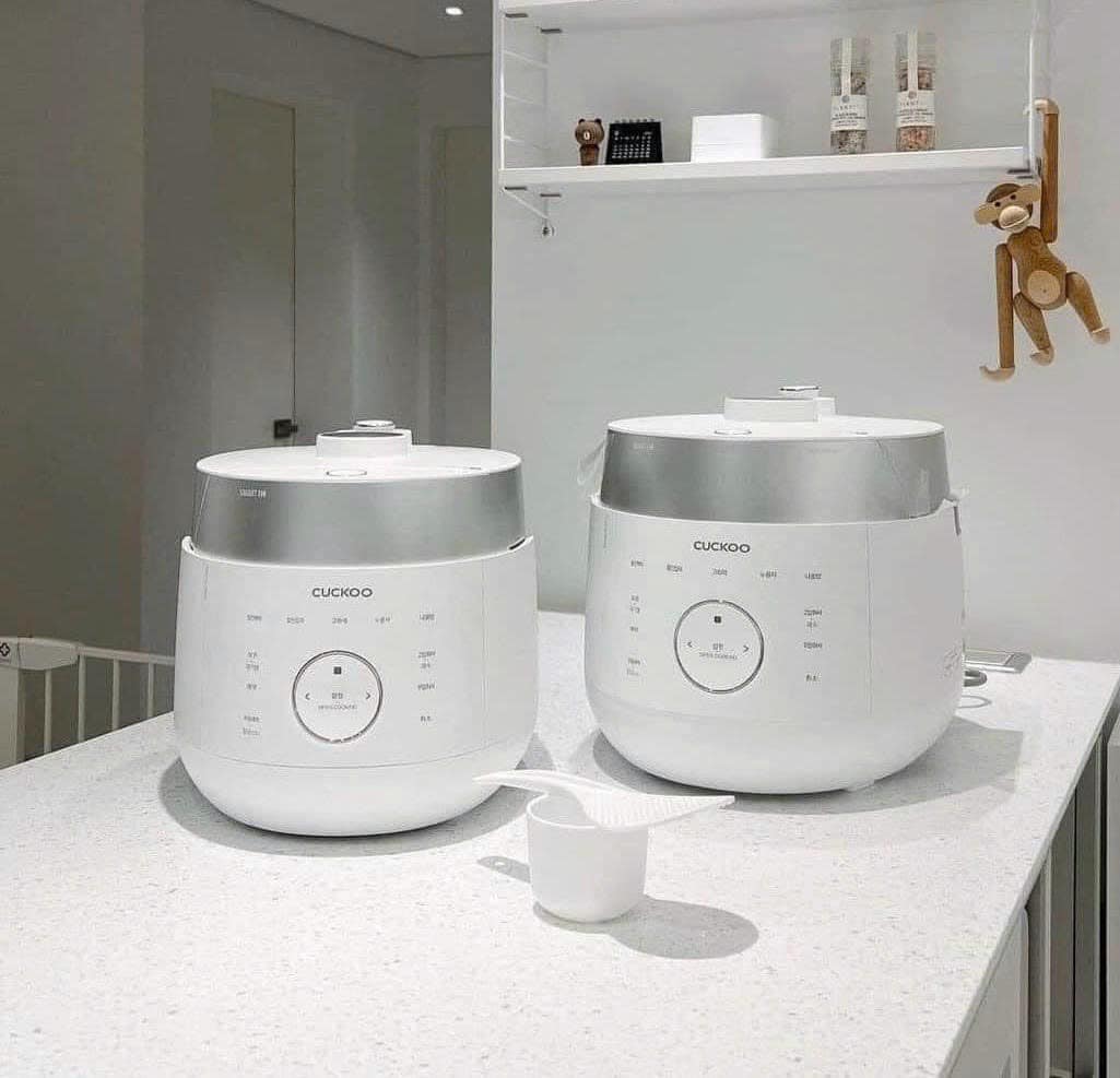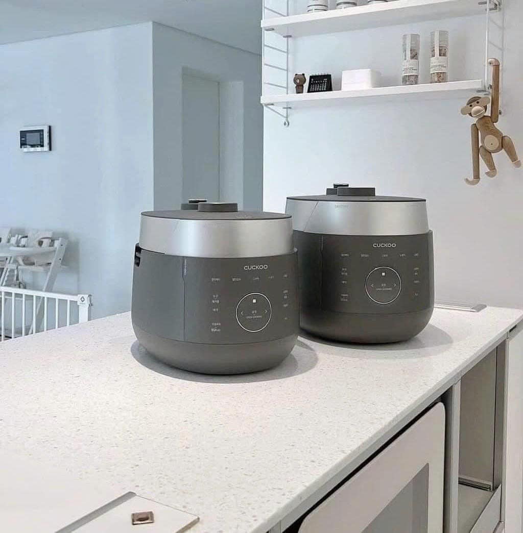 Nồi cơm điện cao tần áp suất kép Cuckoo với thiết kế sang trọng, mang phong cách Hàn Quốc, 3 màu sắc trắng, đen, xám trang nhã, làm tăng vẻ hiện đại cho gian bếp.