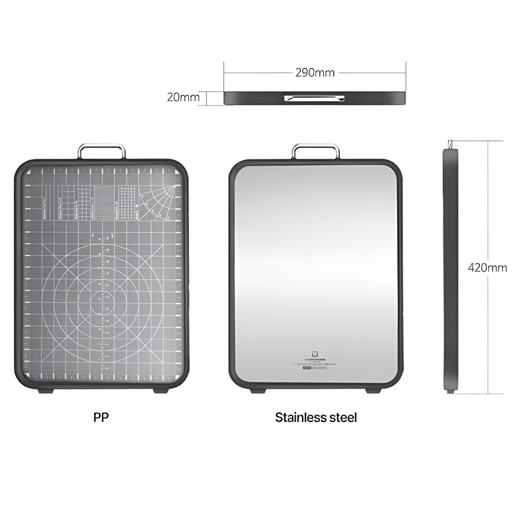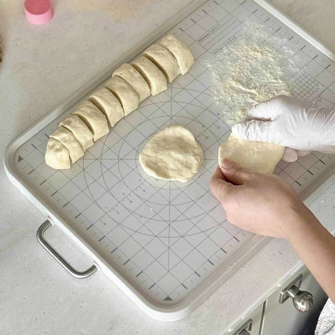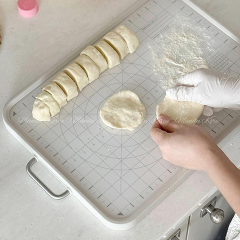 Mặt nhám Polypropylene có thước đo định mức, hỗ trợ phân chia nguyên liệu chính xác, nhồi bột hoặc cắt lát chuẩn gọn.