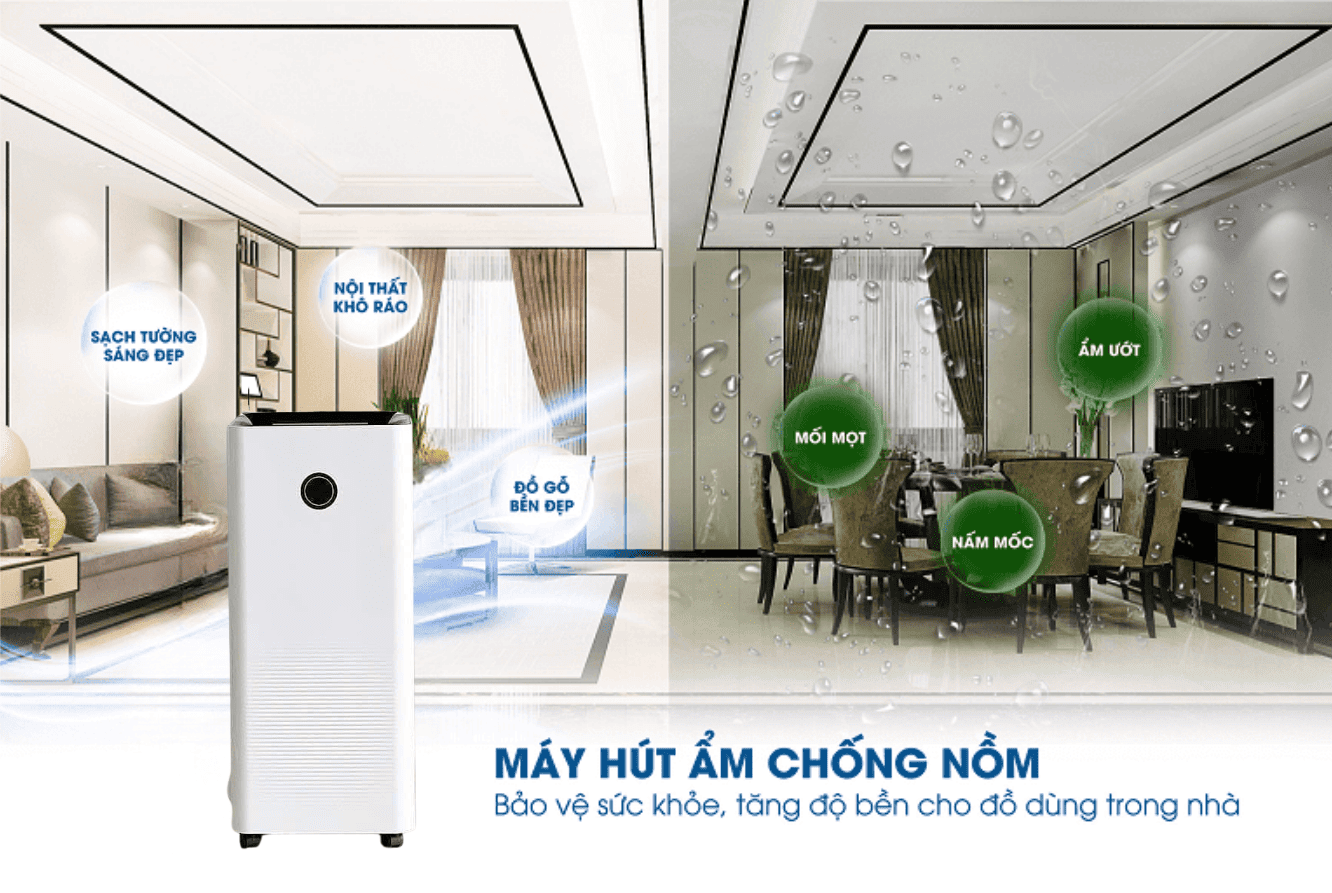 Do đó, bên cạnh các biện pháp tự nhiên như đóng kín cửa hay dùng giẻ lau, việc trang bị những sản phẩm hữu ích giúp cân bằng độ ẩm, hút ẩm và bảo vệ không gian sống là rất cần thiết — nhất là với gia đình có trẻ nhỏ, người già hoặc người có bệnh hô hấp.